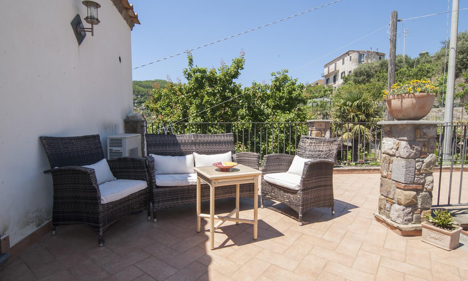 Sulle colline della penisola sorrentina in posizione strategica si trova la nostra struttura un vecchio casale di campagna. Recentemente ristrutturato con una fantastica vista mare, è affacciato sul golfo di Salerno di fronte ai mitici isolotti chiamati 'li galli' che la leggenda vuole essere gli scogli dove Ulisse incontrò le leggendarie sirene per questo la penisola sorrentina è detta anche terra delle sirene. L'appartamento è composto da due camere da letto con relativo bagno una cucina abitabile e un ampio terrazzo dove rilassarsi immersi nel verde e prendere il sole prima di affrontare le molteplici escursioni che ci sono da fare nella zona.